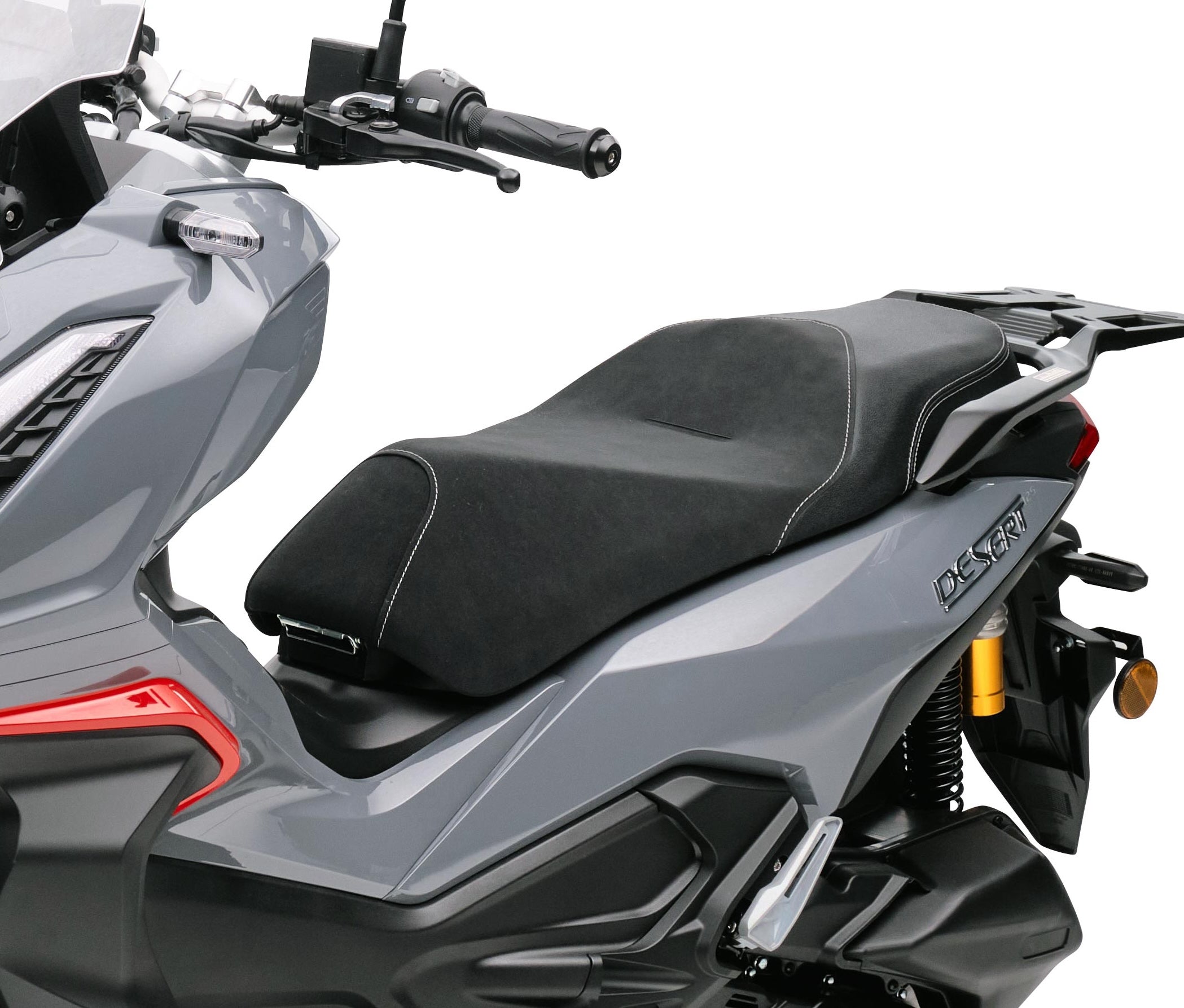 Mit seinem sportlichen Design und dynamischen Linien wird der Desert Motorroller zum Blickfang auf jeder Straße. Dieser Roller vereint Leistung und Eleganz in einem Fahrzeug, das dich stolz durch die Stadt oder über Land begleiten wird.
