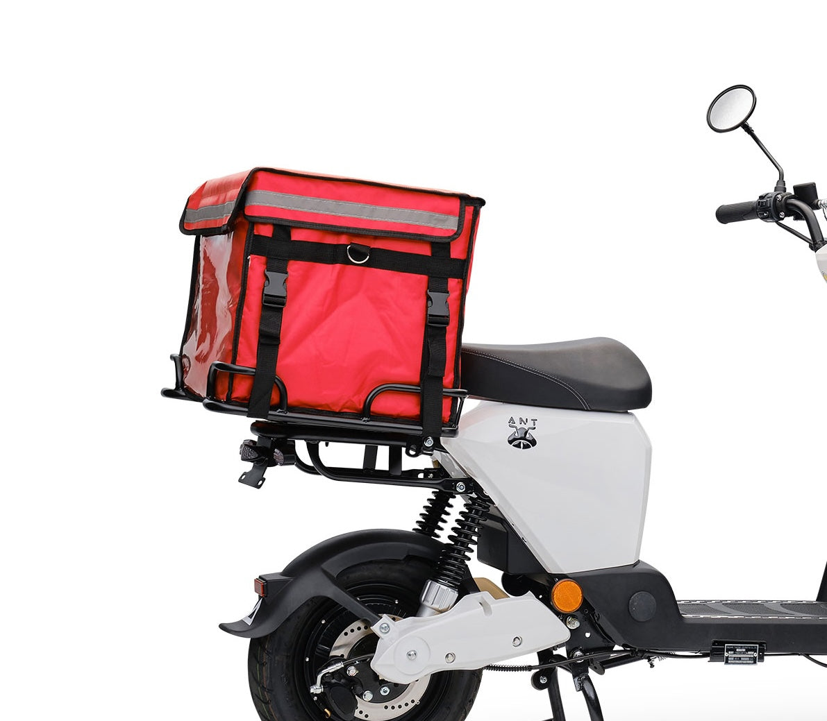 Der Elektroroller ANT besticht mit seiner Leichtigkeit und dem schlichten Design. Serienmäßig sind Zentralzündung, Lenkerschloss, Gepäckhaken, Haupt- und Seitenständer, Tankanzeige, Abblendlicht, Gepäckträger und Sitzbankfach an Bord.