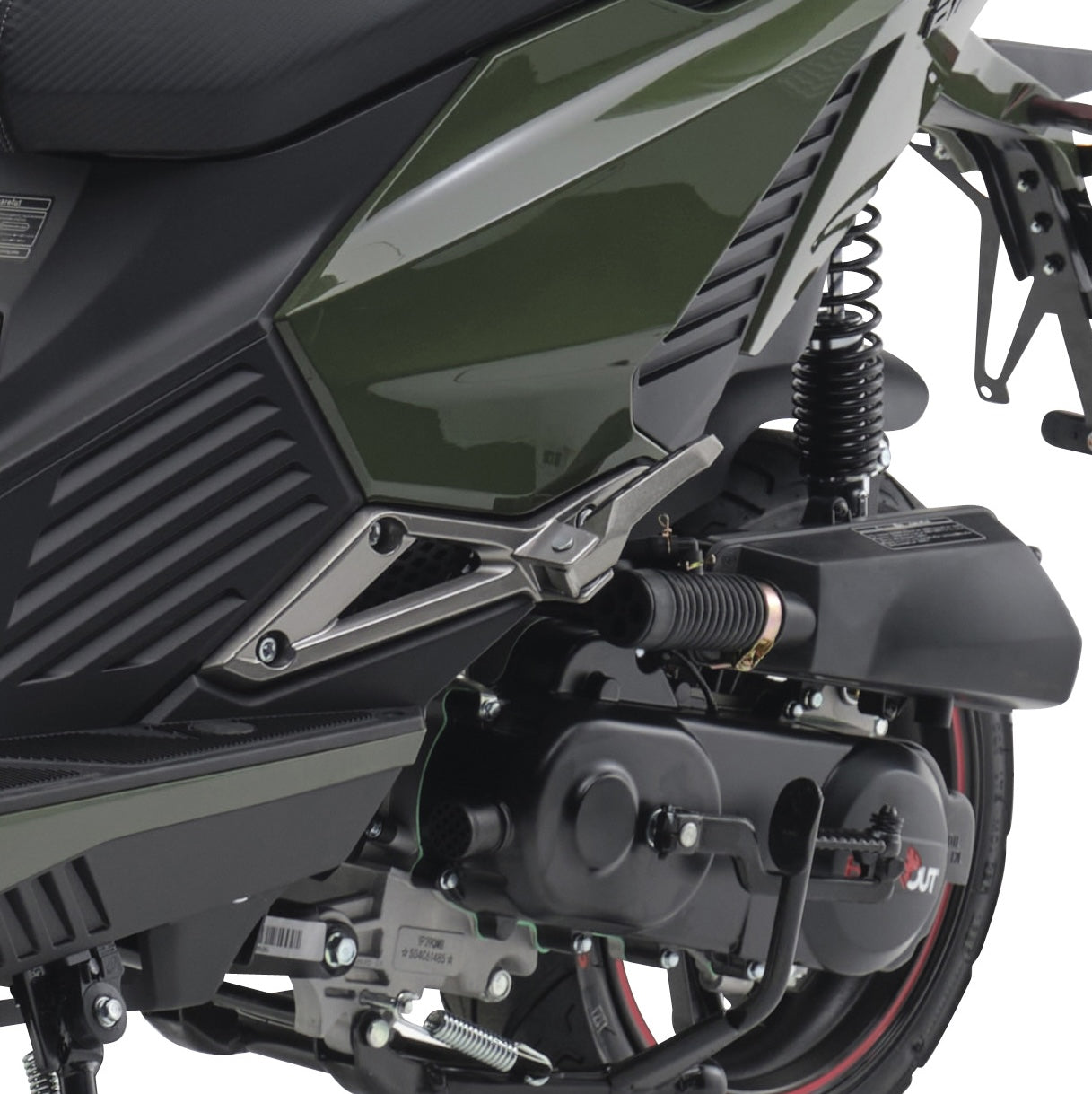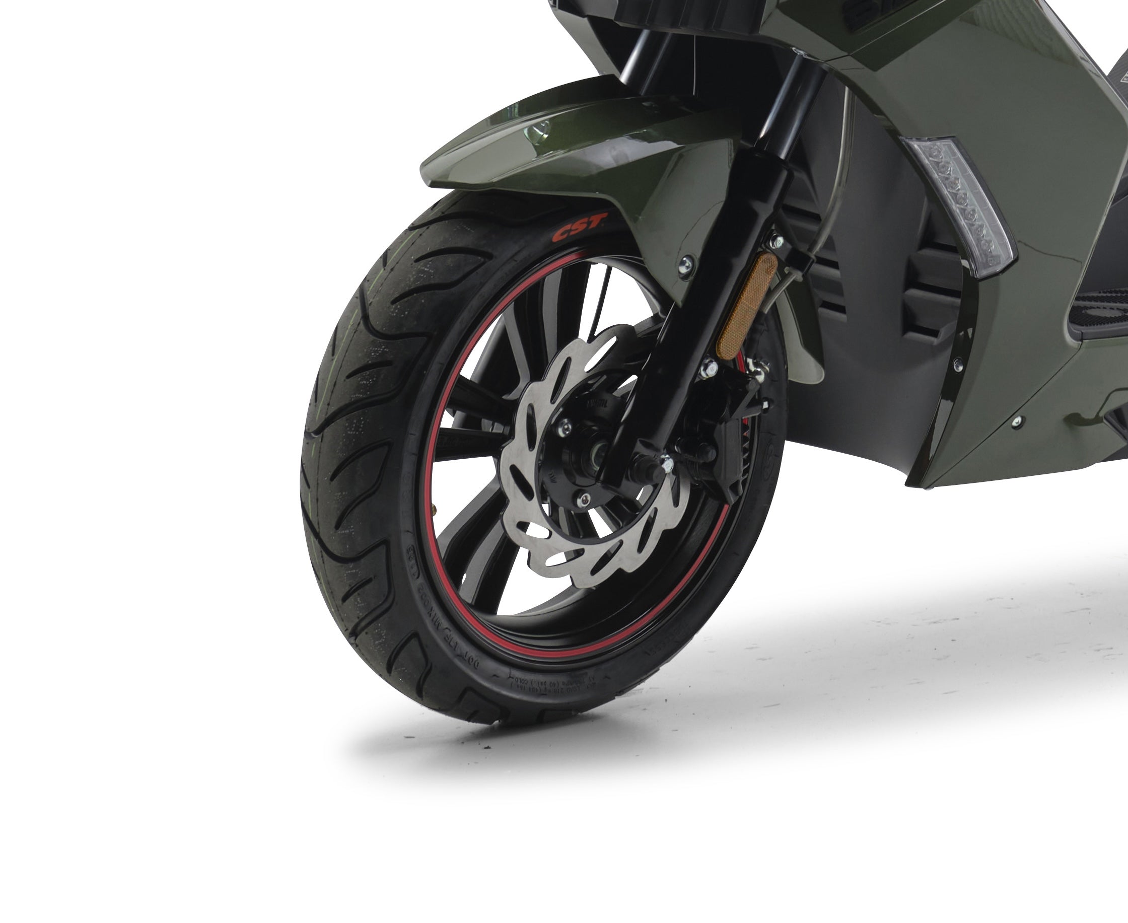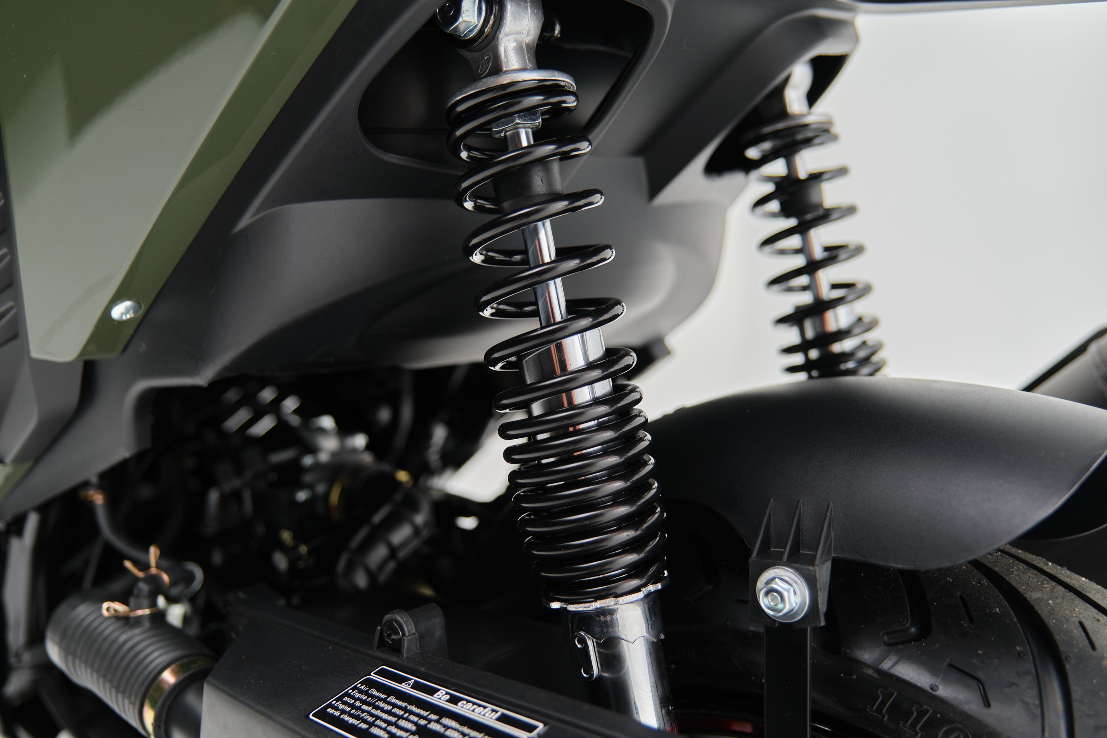 Für seine 50ccm beschleunigt das Modell auf den ersten Metern ordentlich, aber nicht zu schnell. Das sorgt für mehr Kontrolle und ein gutes Gefühl beim Starten. Einmal in Schwung, befindest Du dich dann umgehend auf der Überholspur und erreichst schnell die 45 km/h betragende Spitzengeschwindigkeit. Die hydraulischen Scheibenbremsen vorne und hinten sind für das nötige Sicherheitsgefühl verantwortlich, die LED-Beleuchtung dafür, dass Du zu später Stunde gut siehst und noch besser gesehen wirst. Serienmäßig gehören außerdem eine Alarmanlage und „Keyless Go“ zur Ausstattung.