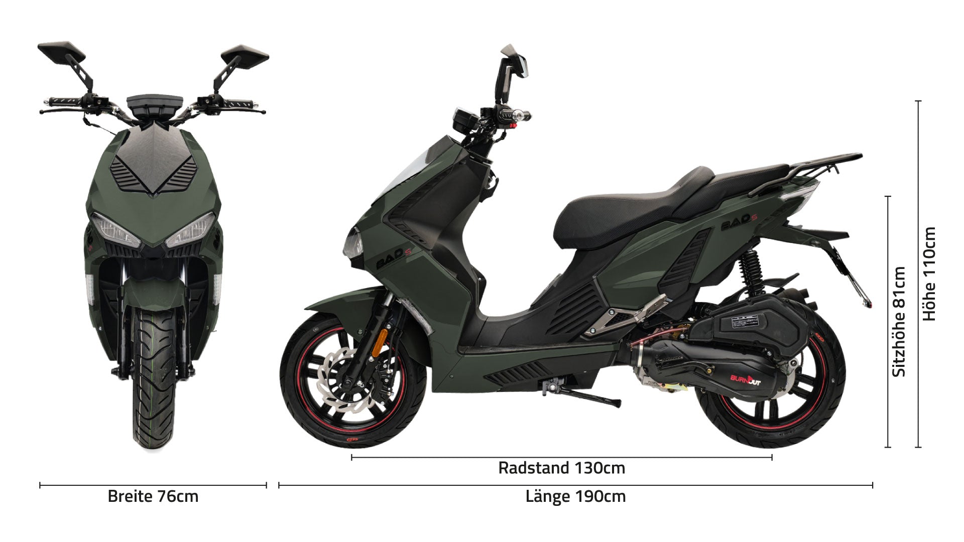 Mit 2,6 Litern auf 100 Kilometern fällt der Verbrauch des „Bad’s“ übrigens sehr überschaubar aus. Dank des fünf Liter umfassenden Tanks kannst Du mit einem Volltank also gut 200 km zurücklegen.