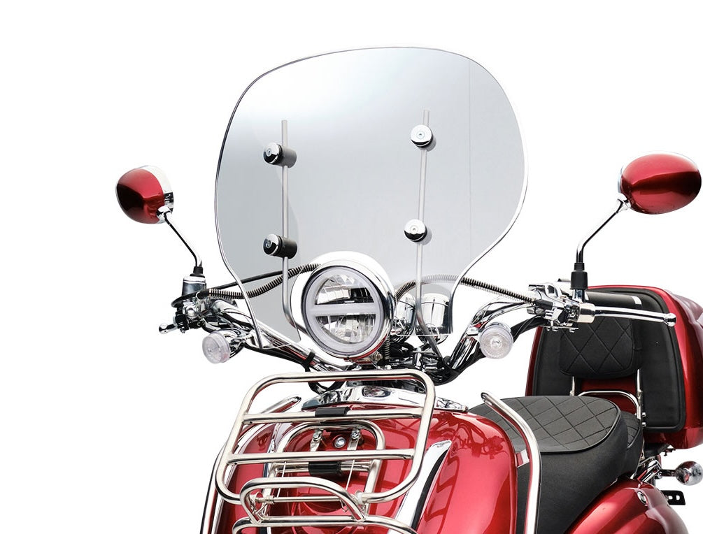 Besonders bei stürmischem oder windigem Wetter praktisch: der Windschild. Dank ihm hast Du eine angenehme Sicht nach vorne. Und wenn Du mal Deine Sonnenbrille im Flur oder dem Bürotisch hast liegen lassen, sorgt er dafür, dass Dir die kleinen Tierchen aus dem Weg gehen und nicht in Deinem Gesicht landen. Ein weiteres praktisches Extra: Wenn Du vergessen hast, Dein Handy rechtzeitig aufzuladen, kannst Du es dank des serienmäßigen USB-Ports während Deiner Fahrt tun. Alles, was Du dafür benötigst, ist ein Kabel mit dem passenden Anschluss.