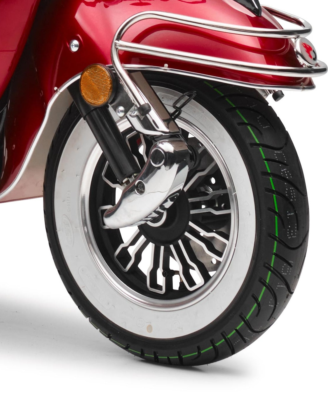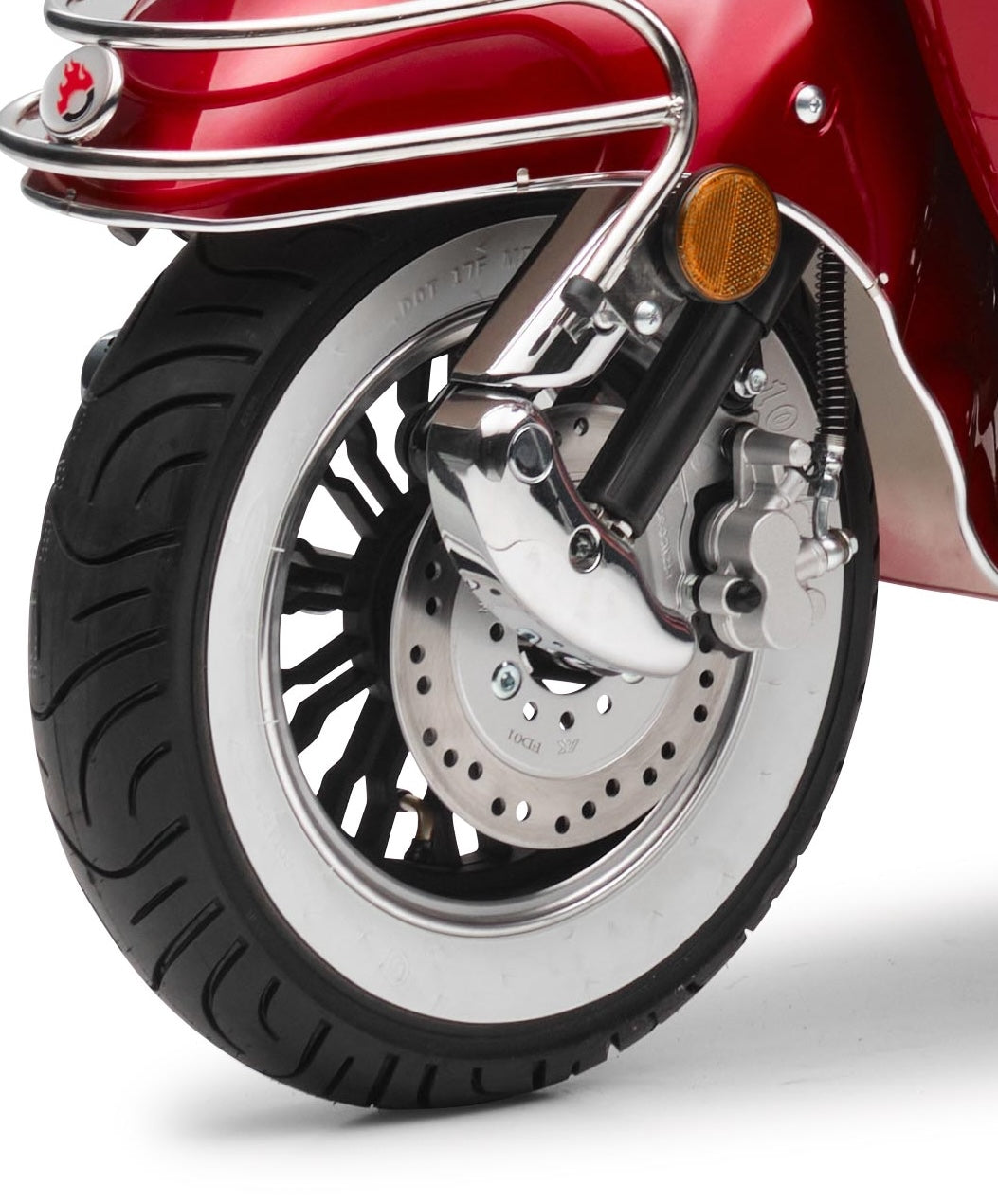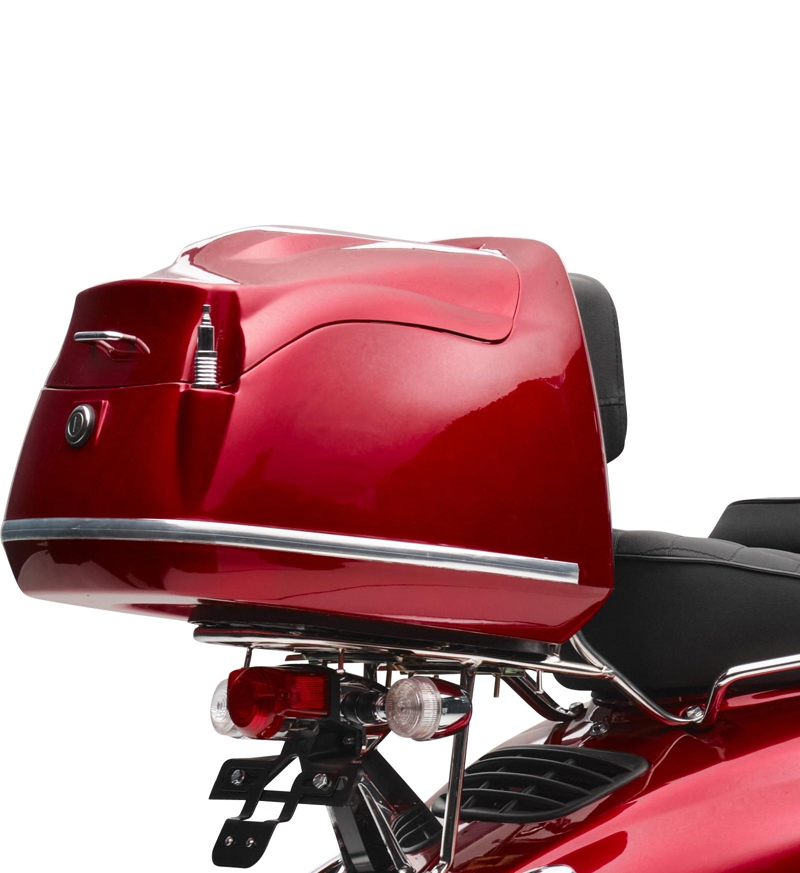 Für die passende Optik sorgt das Chrom-Paket, das die Seitenplanken und den Motorblock umfasst. Abgerundet wird das elegante Gesamtbild durch die Weißwandreifen und die Alu-Speichenfelgen.