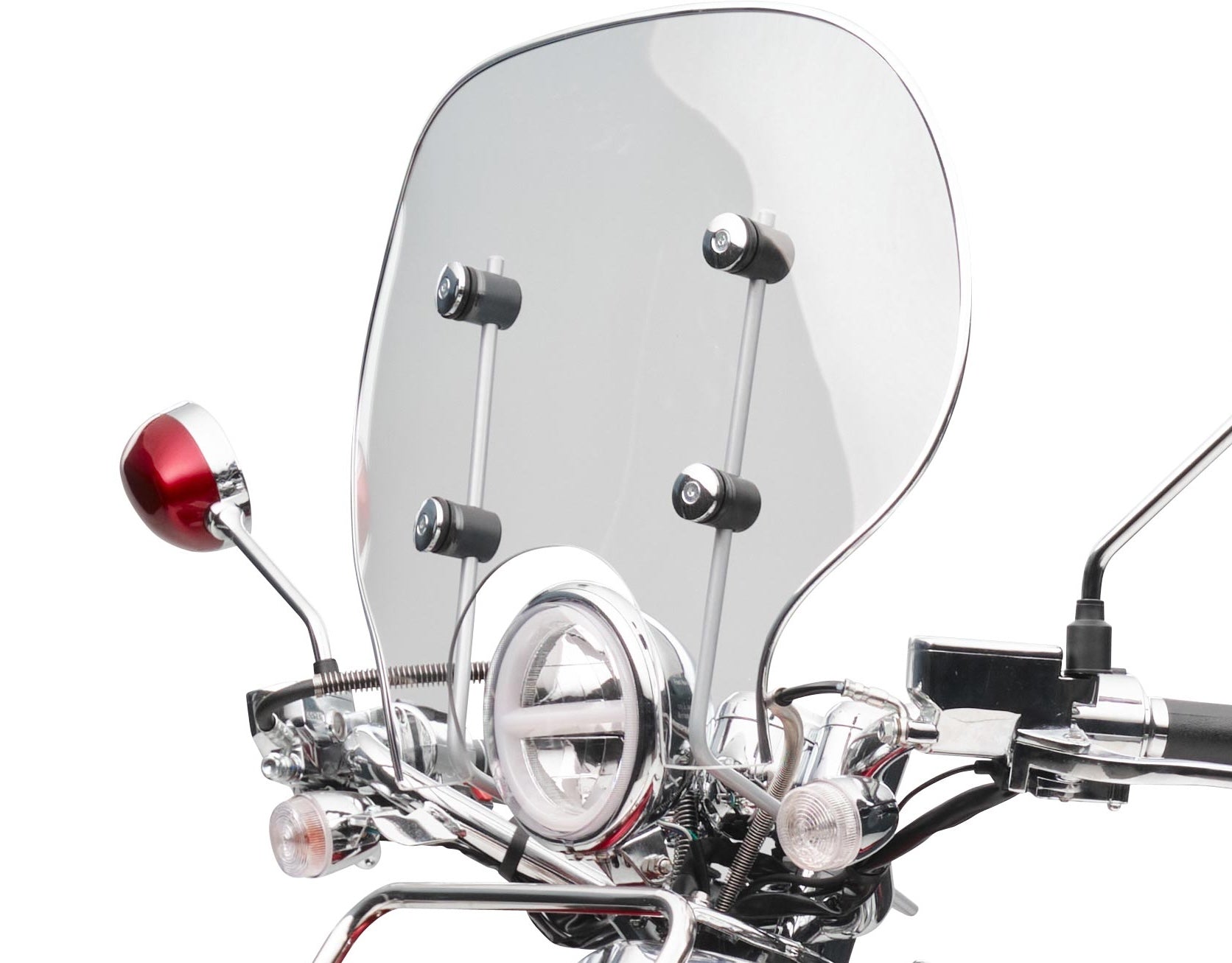 Besonders bei stürmischem oder windigem Wetter praktisch: der Windschild. Dank ihm hast Du eine angenehme Sicht nach vorne. Ein weiteres praktisches Extra: Wenn Du vergessen hast, Dein Handy rechtzeitig aufzuladen, kannst Du es dank des serienmäßigen USB-Ports während Deiner Fahrt aufladen. Alles, was Du dafür benötigst, ist ein Kabel mit dem passenden Anschluss.