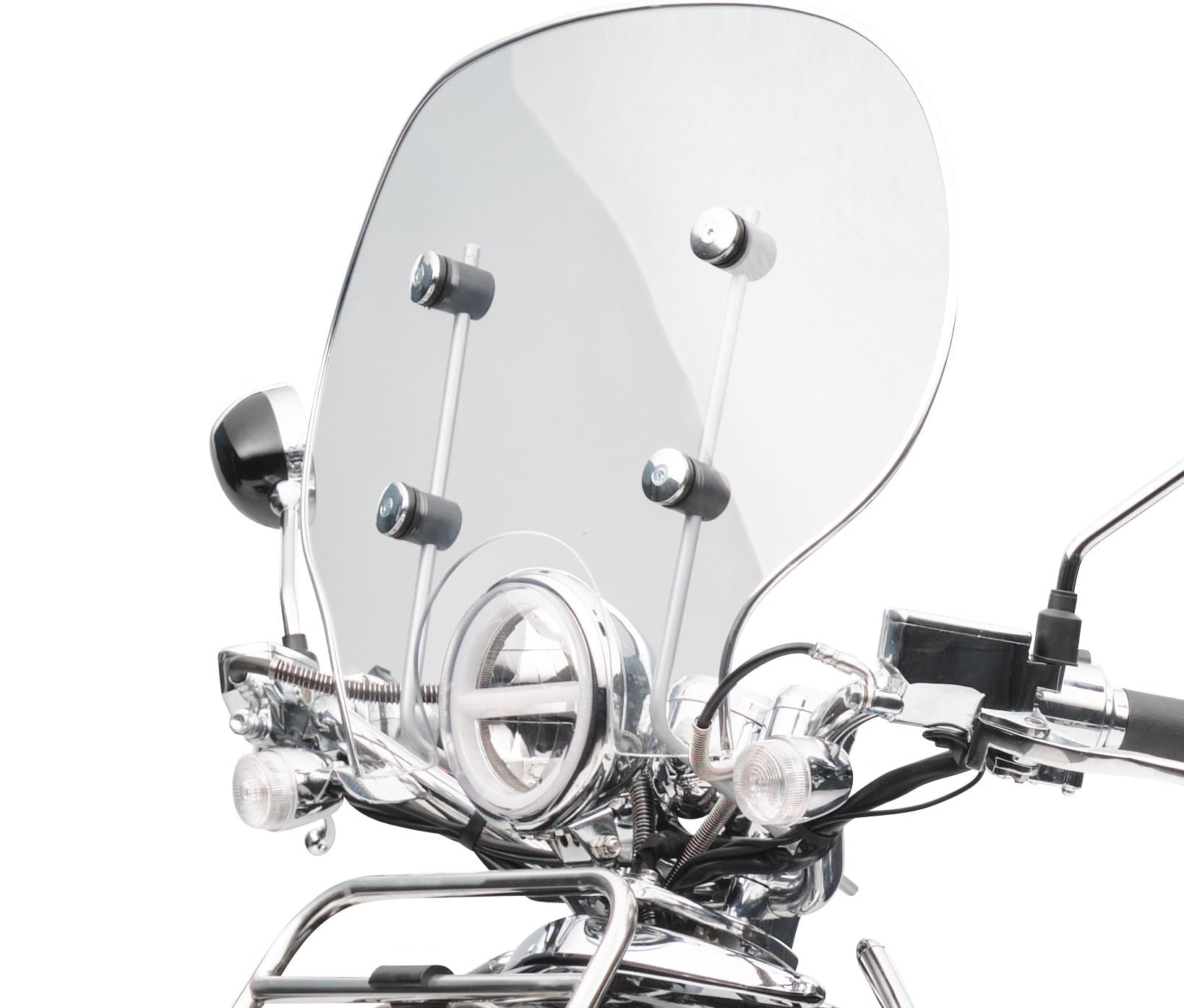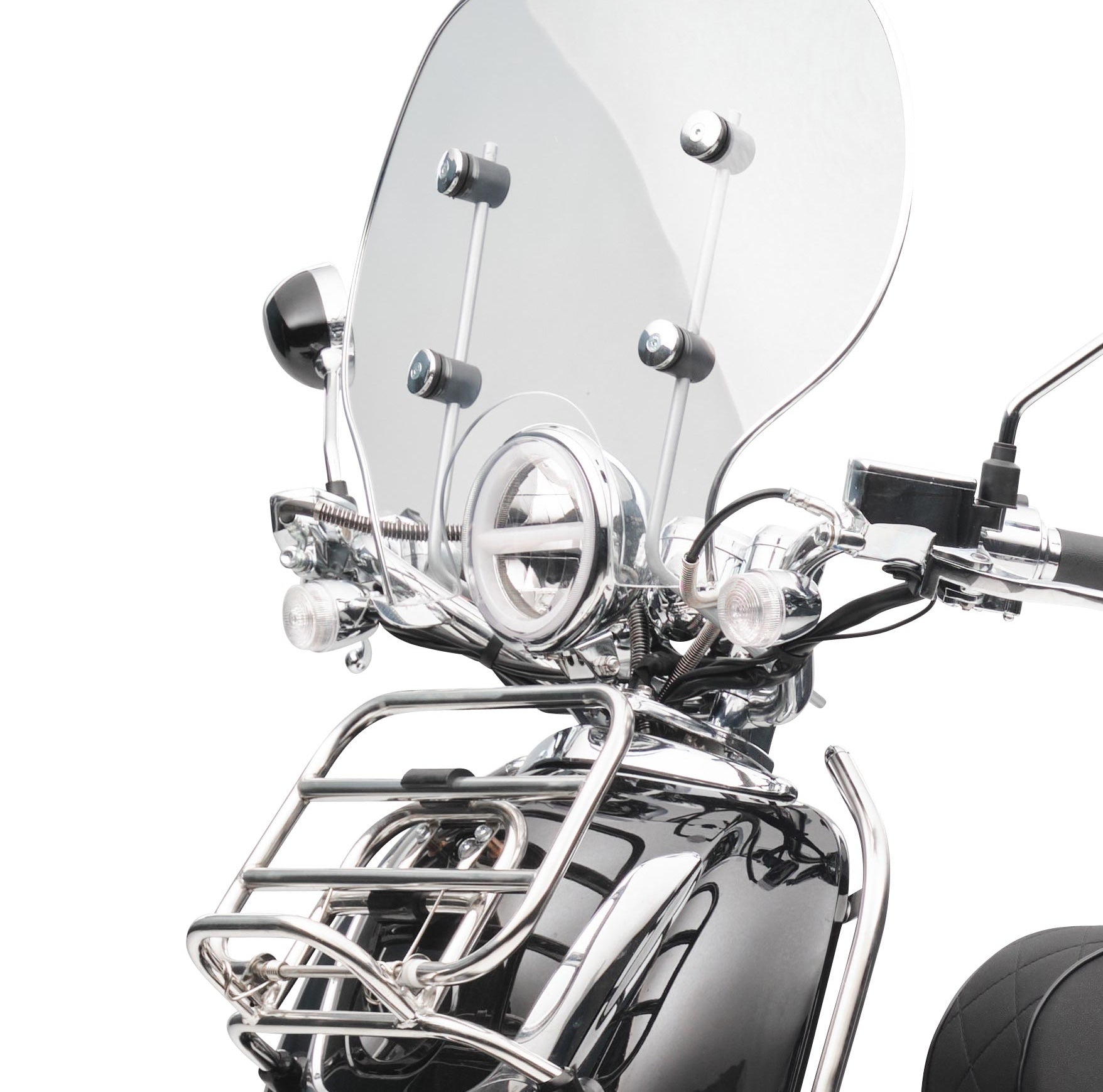 Besonders bei stürmischem oder windigem Wetter praktisch: der Windschild. Dank ihm hast Du eine angenehme Sicht nach vorne. Ein weiteres praktisches Extra: Wenn Du vergessen hast, Dein Handy rechtzeitig aufzuladen, kannst Du es dank des serienmäßigen USB-Ports während Deiner Fahrt aufladen. Alles, was Du dafür benötigst, ist ein Kabel mit dem passenden Anschluss.
