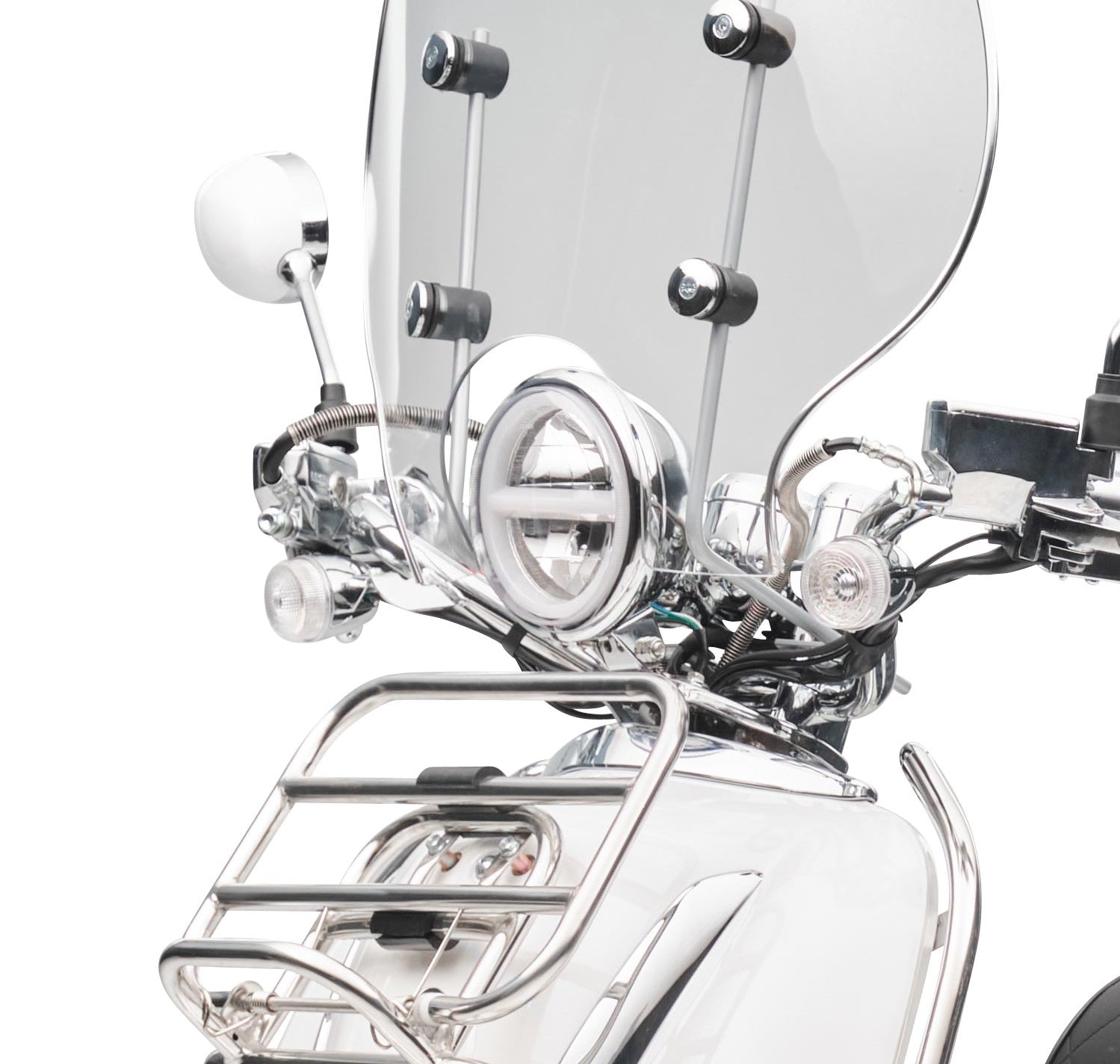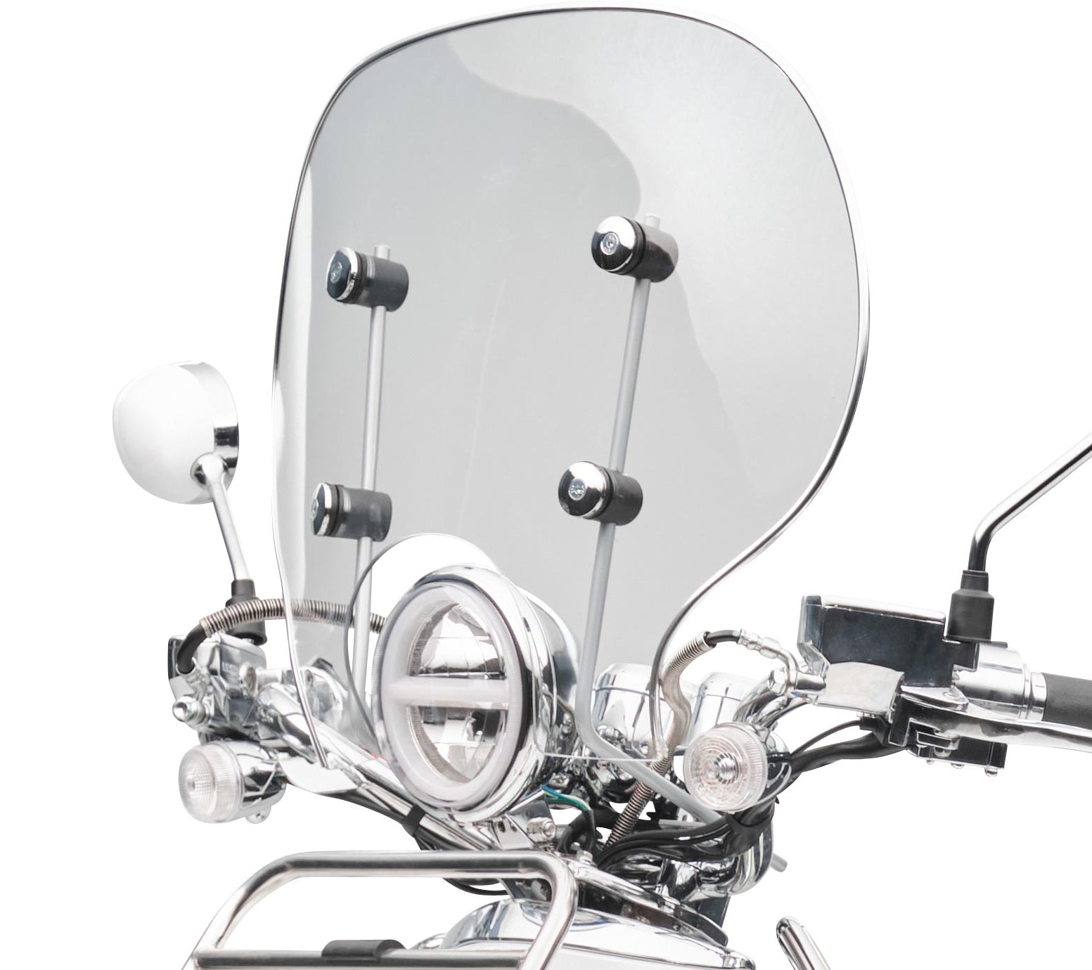 Besonders bei stürmischem oder windigem Wetter praktisch: der Windschild. Dank ihm hast Du eine angenehme Sicht nach vorne. Ein weiteres praktisches Extra: Wenn Du vergessen hast, Dein Handy rechtzeitig aufzuladen, kannst Du es dank des serienmäßigen USB-Ports während Deiner Fahrt aufladen. Alles, was Du dafür benötigst, ist ein Kabel mit dem passenden Anschluss.