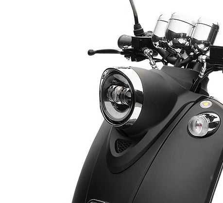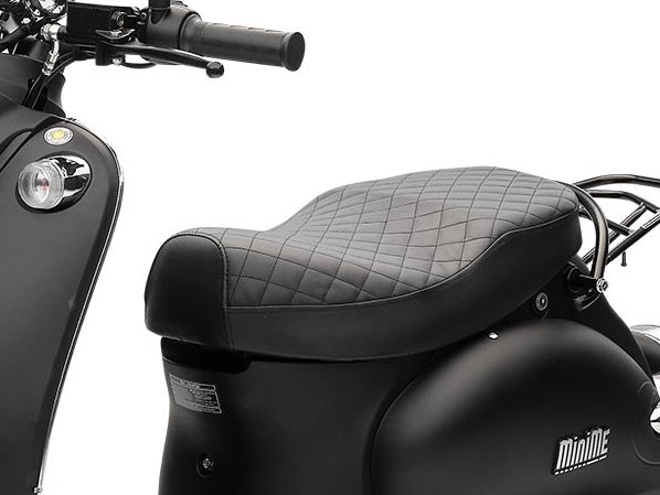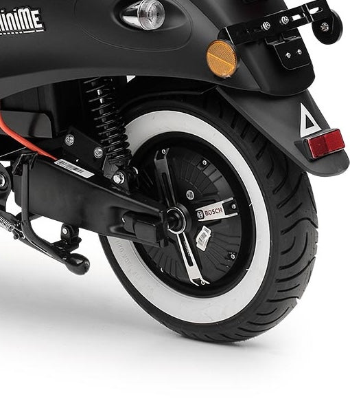 Ein hoher Spaßfaktor ist garantiert, wenn du mit deinem MiniMe ins Büro oder Kino fährst – und das mit gutem Gewissen. Der Elektro Roller bringt dich zuverlässig und klimafreundlich zu allen deinen Zielen in der Stadt. Da fällt der Verzicht auf das Auto nicht schwer und du kannst gleichzeitig etwas für die Umwelt tun. Der Motorroller ist mit seiner Farbgebung, der schwarzen Sitzbank, den Aluguss-Felgen und der angesagten Retro-Optik ein echter Hingucker. Dazu passt auch die extravagante, stylishe LED Tachoeinheit und die nostalgischen Seitenreflektoren. Der umweltfreundliche E-Scooter hat als Hinterradantrieb einen leistungsstarken, wartungsfreien und bürstenlosen Bosch-Radnabenmotor mit maximal 2000 Watt, also 2,3-2,5 PS, und kommt damit schnell auf seine Höchstgeschwindigkeit von 45 km/h. Er ist zudem auf 25 km/h drosselbar, falls Du ihn mit einer Fahrerlaubnis nach Klasse AM nutzen möchtest. Du brauchst für deinen MiniMe lediglich ein Versicherungskennzeichen und natürlich einen Helm – schon kann es losgehen.